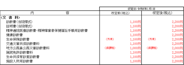 令和8年1月1日受付分より、文書料金を下記のとおり改定させていただきます皆様にはご負担をおかけすることとなり、誠に恐縮ではございますが、ご理解とご協力をお願い申し上げます。